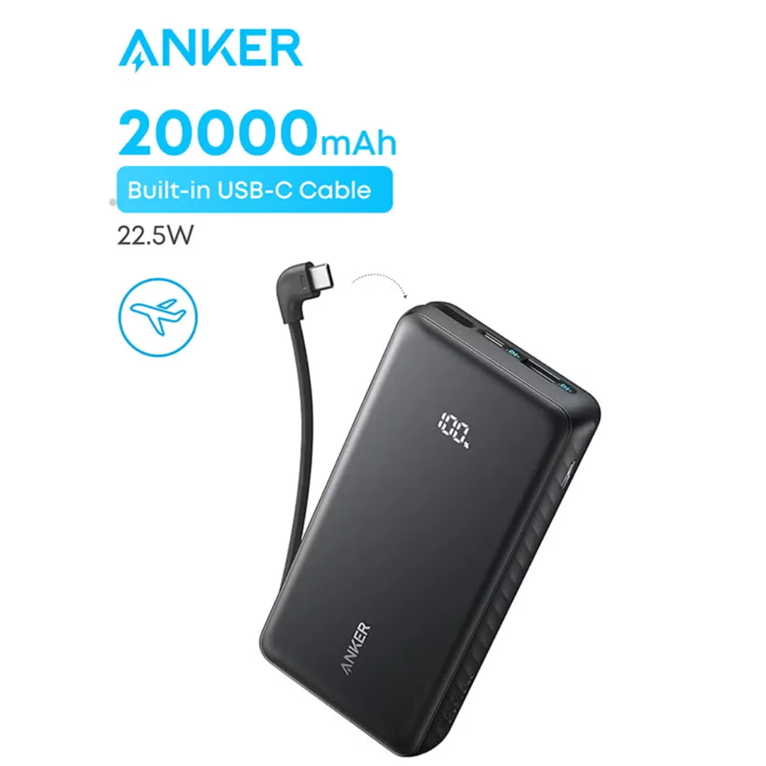 باور بانك أنكر زولو 20,000 مللي أمبير (22.5 واط) | كابل مدمج | ضمان 18 شهر - ⚡ شحن سريع 22.5 واط | 🔋 20,000 مللي أمبير | 🔌 كابل USB-C مدمج | 📊 شاشة رقمية | 🛡️ حماية ActiveShield 3.0 | ✈️ مسموح بالطائرة. السعر: 1570 جنيه | ضمان 18 شهر