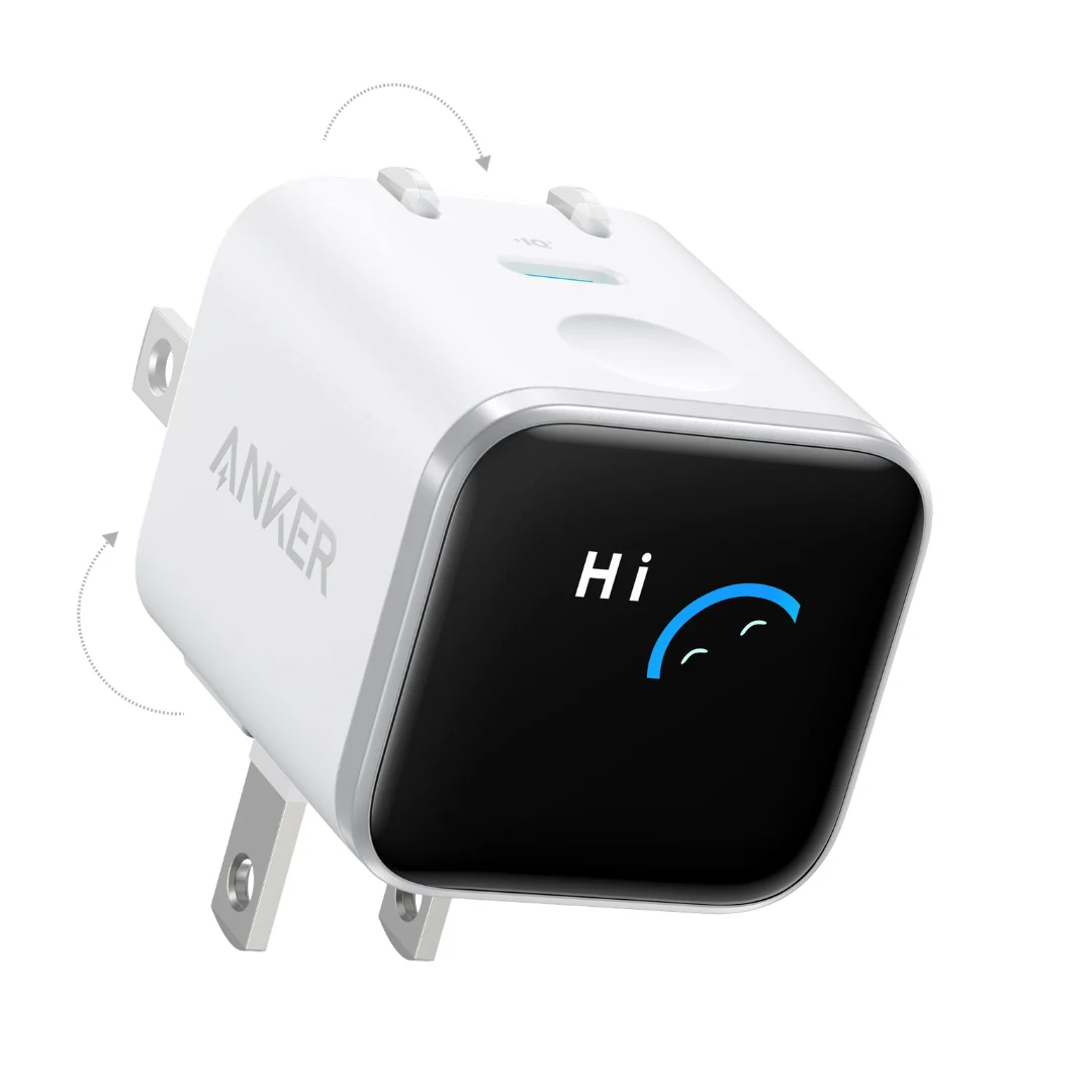- 45W GaN USB-C PD 3.0 with Smart TFT Display — real-time wattage, battery %, device name, AI animations