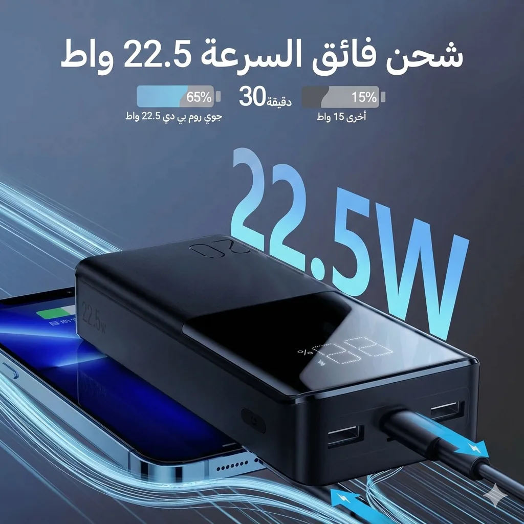 باور بانك جوي روم 20000 | أرخص باور بانك للسفر (بيشحن 3 أجهزة) | ضمان 12 شهر - أعلى قيمة مقابل سعر في مصر 🔋 4 شحنات ايفون 17 | ⚡ שحن سريع 22.5 واط | 🔌 شغال معاك في مواصلات الساحل الطويلة. السعر: 997 جنيه | ضمان 12 شهر